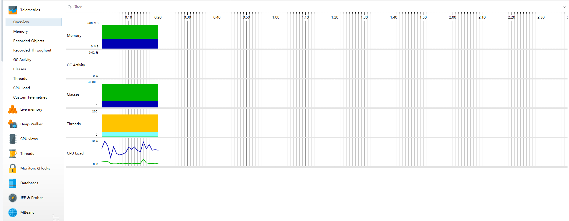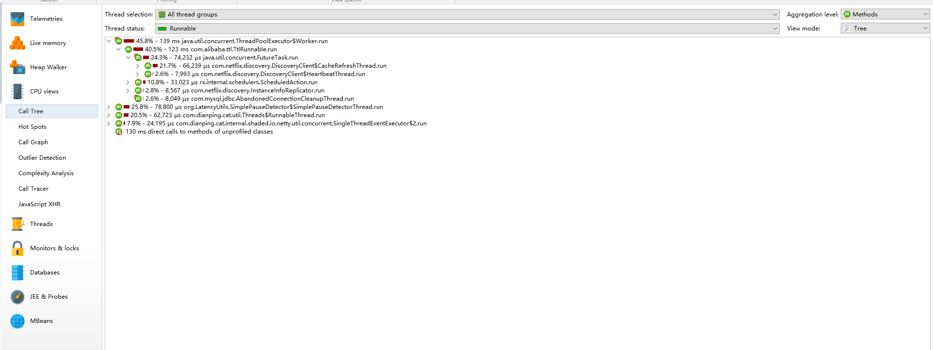 - 列出线程的树结构,及线程下面对象占用内存的空间