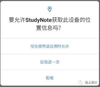 简单的说,就是在申请与位置信息、麦克风或摄像头相关的权限时,系统会自动提供一个单次授权的选项,只供这一次权限获取。然后用户下次打开app的时候,系统会再次提示用户授予权限。这个影响应该不大,只要我们每次使用的时候都去判断权限,没有就去申请即可。放一张新版本权限获取样式: