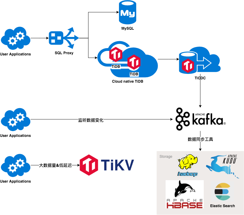 提供更方便的接入方式:我们现有的几条业务线的接入,大多是先通过 DM 同步数据,然后与业务方一起配合做一次迁移。我们希望未来可以更方便地服务业务方,通过一个 SQL proxy 的代理层辅助,业务方只需要连接到 proxy 层,后端是 MySQL 或者 TiDB 对于业务方不需要关心,真正做到对业务 0 侵入。