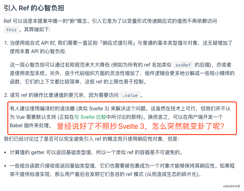 最近 Vue3 关于 ref-sugar 的提案引起了广泛的讨论:juejin.im/post/689417…[1]