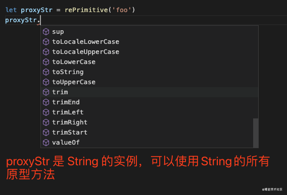let proxyStr = rePrimitive('foo') // 等价于 let proxyStr = rePrimitive(new String('foo'))