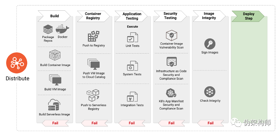 这个阶段会使用镜像定义和规范来构建后续步骤的制品,例如容器镜像、虚拟机镜像等。在现代 CI/CD 语境下,发布阶段中包含了系统性的应用测试,以此识别软件中的 Bug 和故障。然而对开源软件和包的复用,有可能会把安全威胁引入到制品之中。为了防止这种情况,需要对制品进行扫描,并验证其完整性,防止发生篡改。后续内容会为开发和运维人员介绍识别和保护容器镜像、CI/CD 流水线的工具、技术以及基础设施。还可以对制品进行加密来满足额外的保密需求。