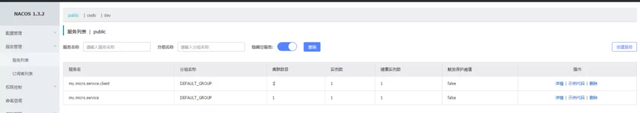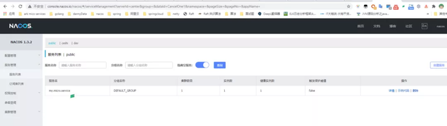 7、在 Nacos console 中可以看到 my.micro.service 成功注册。