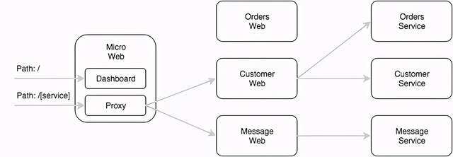 UI 是 go-micro 的 web 版本,允许通过 UI 交互访问环境。在未来,它也将是一种聚合微型 Web 服务的方式。它包含一种 Web 应用程序的代理方式。将 /[name] 通过注册表路由到相应的服务。Web UI 将前缀“go.micro.web。”(可以配置)添加到名称中,在注册表中查找它,然后将进行反向代理。