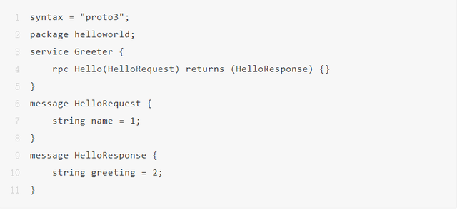 在服务端中使用 protobuf 文件定义了一个服务叫做 Greeter 的处理器,它有一个接收 HelloRequest 并返回 HelloResponse 的 Hello 方法。