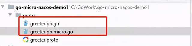 5、在 proto 目录下,生成了 pb.go 以及 pb.micro.go 两个文件