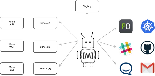 Hubot 风格的 bot,位于您的微服务平台中,可以通过 Slack,HipChat,XMPP 等进行交互。它通过消息传递提供 CLI 的功能。可以添加其他命令来自动执行常见的操作任务。