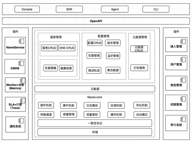 Nacos 逻辑架构及其组件概览图: