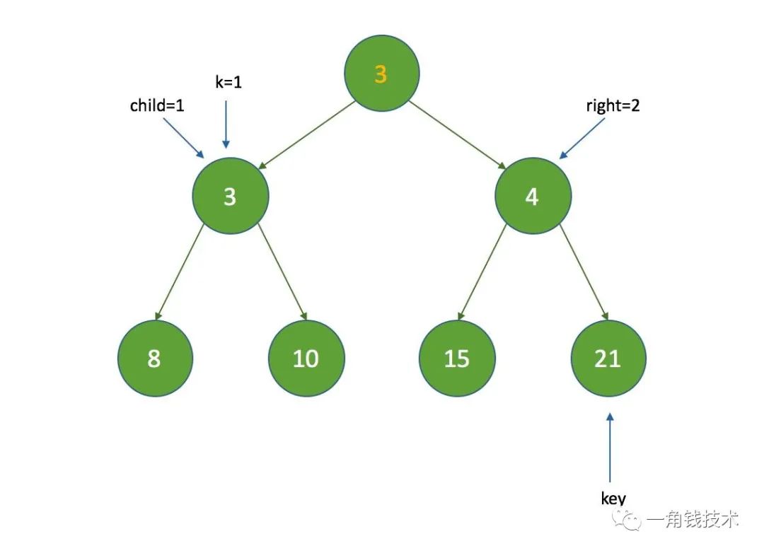 这时再经过如上判断后,将k的值为3,最终的结果如下: