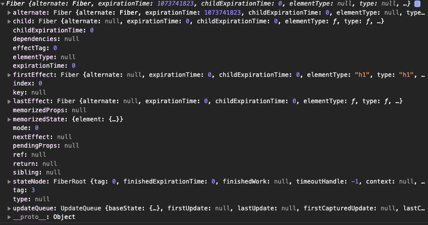 那么如何通过 dom 拿到这个 dom 对应的 fiber 呢,事实上, React 会给这个 dom 元素添加一个属性指向它对应的 fiber 。对于这个做法我是有疑问的,这样的映射关系也可以通过维护一个 WeekMap 对象来实现,操作一个 WeakMap 的性能或许会优于操作一个 DOM 的属性,且后者似乎不太优雅,如果你有更好的想法也欢迎在评论区指出。