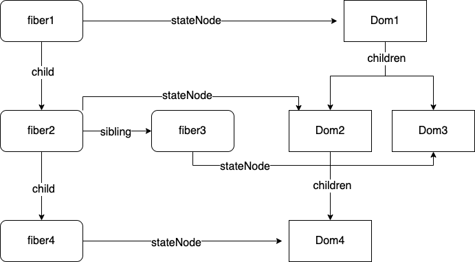 每当 completeWork 中为 fiber 构造了新的 dom,都会给这个 dom 一个指针来指向它的 fiber