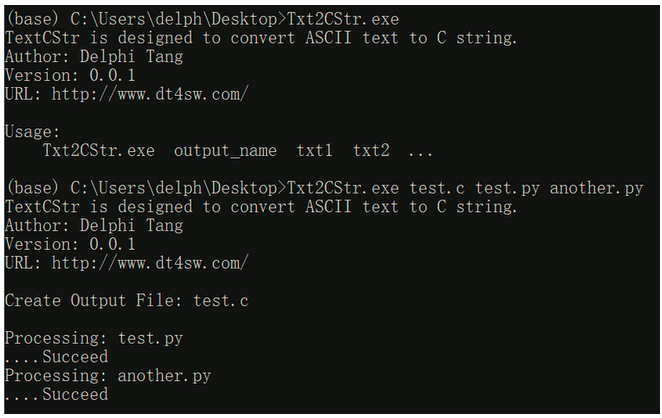 - 【可选】编写 Python 代码(目前未提供任何库支持),并使用文末附件中的 Txt2Str 工具将其转换为 C 字符串,用法如下: