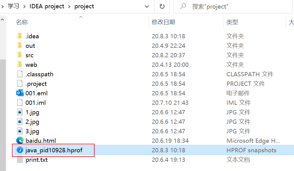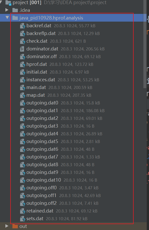 每次打开Dump文件查看完后,建议删除,可以在idea中看到,打开文件后生成了很多内容,占内存,建议删除