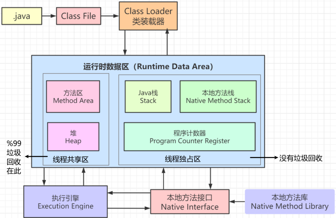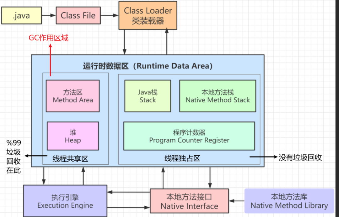 垃圾几乎都在堆里,所以JVM性能调优%99都针对于堆
