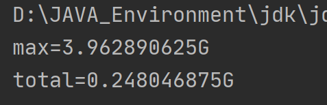 System.out.println("max=" + max / (double) 1024 / 1024 / 1024 + "G");