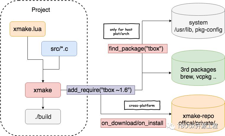 同时,xrepo 也支持从 vcpkg/homebrew/conan 等第三方包管理器中安装包,并提供统一一致的库链接信息,方便与第三方项目的集成对接。