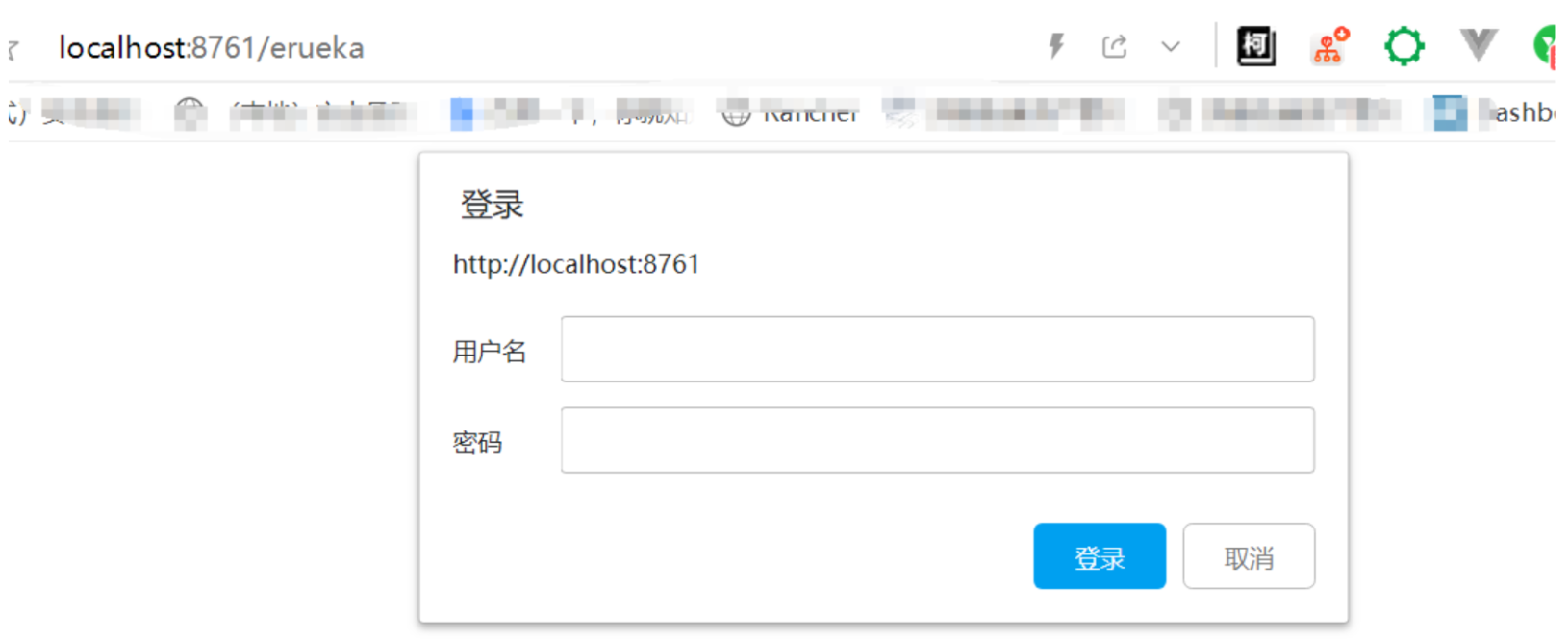 这样我们启动Eureka Server成功后在访问 http://localhost:8761/,此时浏览器会提示你输入用户名和密码,输入正确后才能继续访问 Eureka 提供的管理页面。