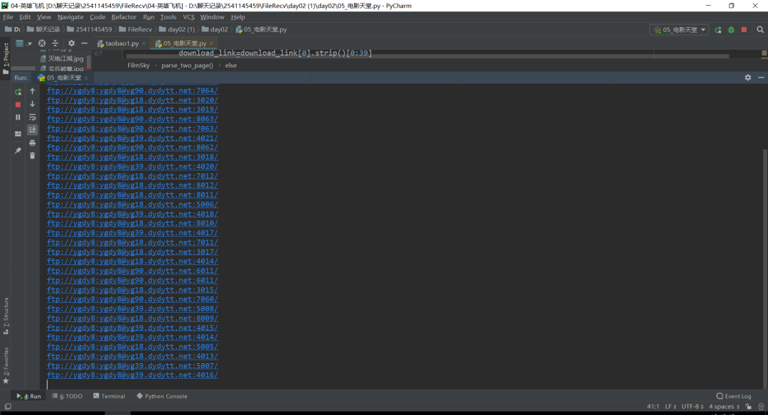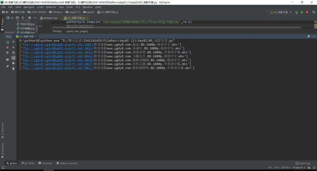 因为在网页网址上的链接有一些是空的 ,所有这样会导致电影下载的链接不匹配。所以我们要加个判断,如果下载链接的长度大于0那么就照常显示,否则就给它一个空值,这样就不会不对应了。最后返回这个结果,如下图所示。