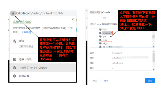 首先需要获取SESSDATA和CSRF(bili_jct)的值。