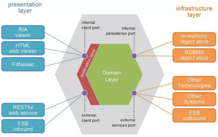 DDD的代码组织推荐六边形模型,一个重点是领域层和应用层的分工。