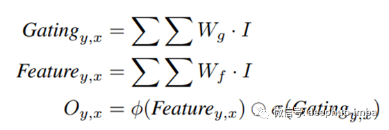 其中输出是两个标准卷积层的输出的逐个元素相乘,一层后跟任何激活函数,另一层后跟一个S型激活函数。