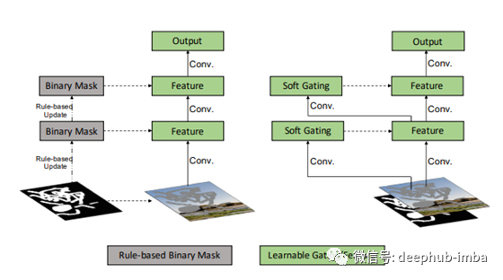 首先,PConv使用基于规则的掩码更新来分隔有效和无效像素。基于规则的掩码更新是手工制作的,是不可学习的。读者可以参考我们之前翻译的一篇文章对PConv进行简短的回顾。由于PConv是不可学习的,因此改进它的最直接的方法是使其可学习。