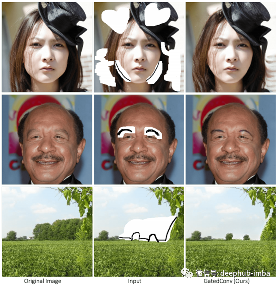 今天,我们将深入研究一种名为DeepFill v2的非常实用的生成型深层图像修复方法。本文可以视为DeepFill v1,Partial Convolution和EdgeConnect的增强版本。简单的说,DeepFill v1中提出的上下文注意(CA)层和EdgeConnect中引入的可选的用户草图输入概念都嵌入在DeepFill v2中。同样,部分卷积(PConv)被修改为门控卷积(GConv),其中基于规则的掩码更新被公式化为可学习的下一卷积层的门控。有了这些想法,DeepFill v2可以比以前的最新方法获得高质量的自由形式修复。图1显示了使用DeepFill v2的一些自由形式的修复结果。
