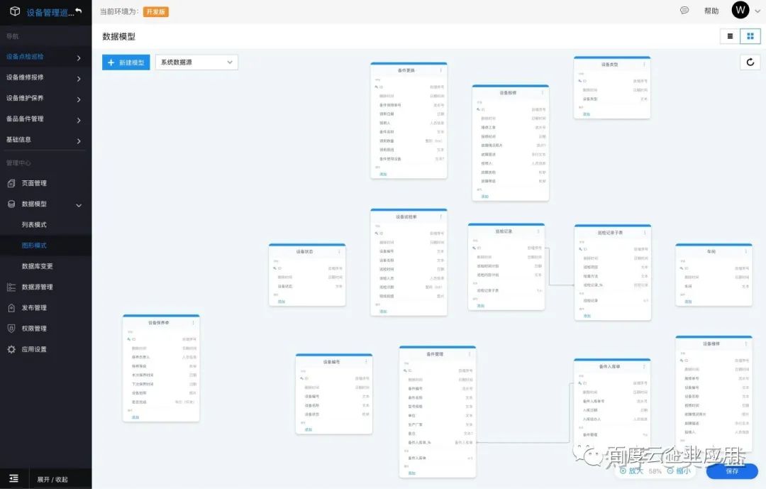 以我们自己为例,「爱速搭」使用了数据模型方式,数据模型其实是在数据库表的基础上的封装,所有修改操作会转成表结构的变更,所以用户最好能有点数据库基础知识,牺牲了易用性,为什么要这样做?我们的主要考虑是 :