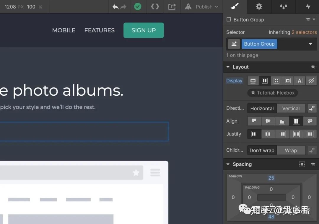 我们有一款制作站点和小程序的 SaaS 产品 AIPage,在开发前曾经调研过各种同类产品,从技术角度上看,前端工程师应该更喜欢 webflow,它几乎将所有 css 开发都做成了可视化编辑,相当于在线版的 Dreamweaver: