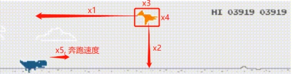 - 当前离小恐龙最近的障碍物与小恐龙的水平距离;