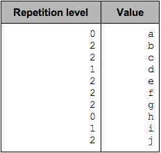 根据以上的分析每一个value需要记录的repeated level值如下: