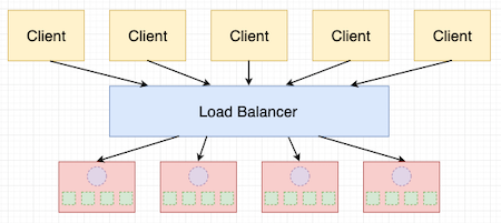 在缺点上,上面的示意图也清楚展示了这种方案的主要局限。我们有 5 个客户端,却只有 4 个 worker。如果这 5 个客户端在同一时间都发送请求,那么负载均衡器会将某一个客户端之外的所有请求发送到 worker 池,而剩下的请求不得不保留在一个队列中,等待有 worker 变得可用。