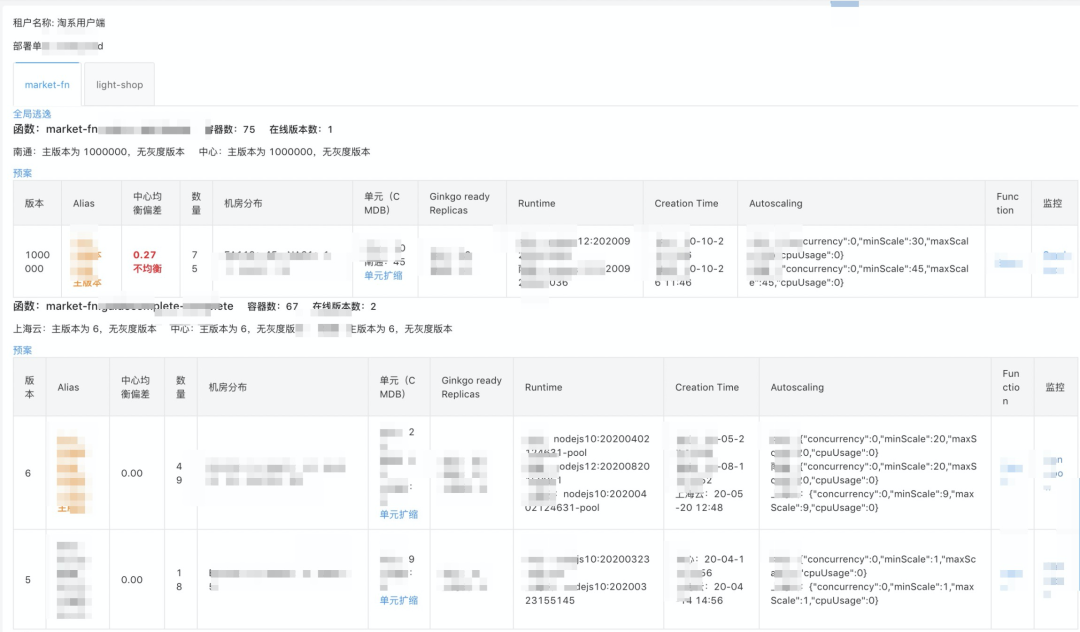 帮助管理员细致的观测每个函数线上运行的具体状态,包括函数线上存在的版本、容器数量、 Runtime 版本、灰度、单元部署状况,甚至可以观测到函数部署是否均衡。