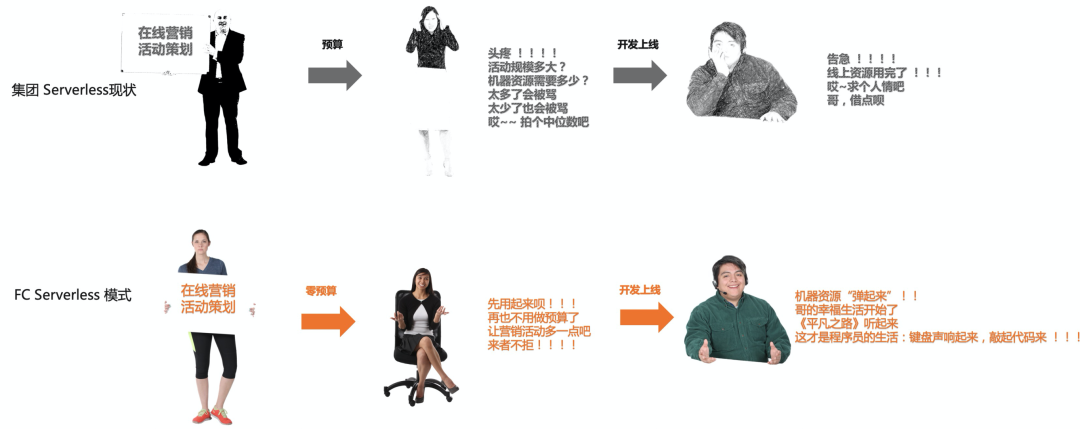 今天,我们从传统的「前端开发者」慢慢走向「应用研发者」,摸爬滚打不容易,除了需要去思考「什么是真正的按需付费」、「弹性」等底层运维相关的命题之外,还需要去考虑「研发效能」相关命题,这也是为什么有更高效的协同模式、组织关系的变化,甚至整个前后端协同的生产关系都在发生变化的原因,今天我们谈「云端一体」,本质是从用户的视角去思考问题,用更高效的方式去解决业务问题。