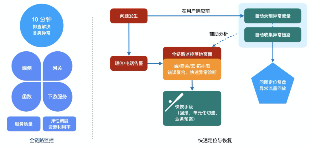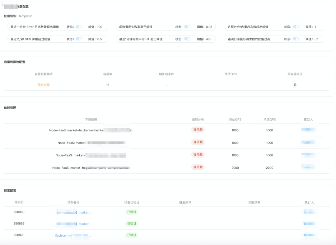 通过半自动化流程生产的作战手册,函数和作战手册关联的硬盘化记录方式,并结合自动限流和下游依赖分析以及预案生产,例如:通过预发流量录制的回放,自动分析出函数下游的强弱依赖,并录入强依赖负责人,方便出现线上问题的时候可以第一时间找到负责人排查问题;根据不同租户对单元化的需求,平台可以帮助用户进行多机房、多单元部署实现异地多活。这些都能够让业务的大促态变得更轻松一些。