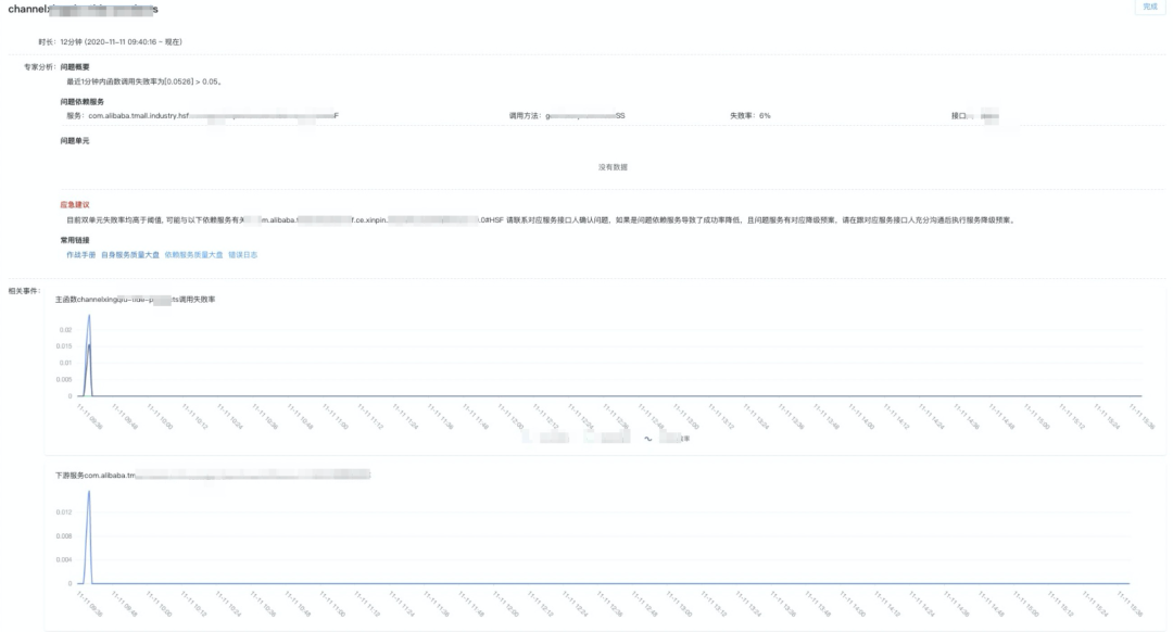 为解决线上问题定位慢的痛点,平台还提供了应急响应系统,当函数成功率降低触发报警时,平台会自动拉取函数以及下游多项数据信息,进行错误分析,快速产出错误报告推送给函数开发者。并引导开发者回到研发平台进行切流、执行预案等止血操作。例如,下游服务强依赖服务A成功率下降,导致函数自身成功率下降,需要联系服务A负责同学。
