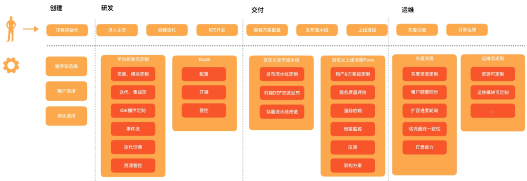 我们定义的解决方案 :即解决某一横向或纵向领域的,贯穿创建、研发、交付、运维阶段的一系列能力的集合。为什么当时需要定义解决方案的定制能力,核心原因是面向今天云端一体化的场景,不同事业部的业务同学有着不同的定制需求。