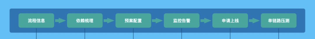 因此,Serverless 研发平台上希望规范化整个流程,从从 强弱依赖梳理 -> 预案配置 -> 监控报警订阅 -> 单链路压测 -> 作战手册生成,记录所有函数上线过程,流程可追溯,文档可沉淀;另外预案、压测、监控等流程做到半自动化,减少上线时间。我们将每个流程节点定义成一个 SOP 单元,这样根据业务特性可以进行 SOP 流程的随意组装。