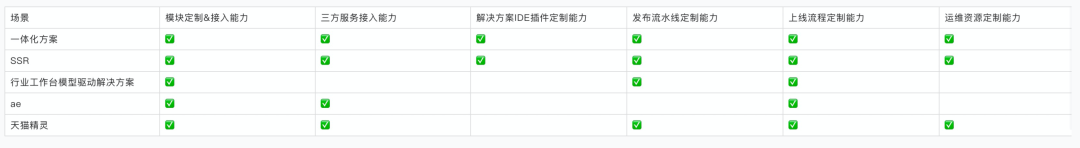 除了以上 3 个解决方案,ICBU 团队研发的 EaaS 微应用级别的解决方案,天猫行业团队研发的面向轻店场景的原生小程序一体化 解决方案等,这里不展开一一介绍了。