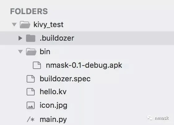 运行成功将会创建一个配置文件buildozer.spec,可以通过修改配置文件更改app的名称等,然后运行: