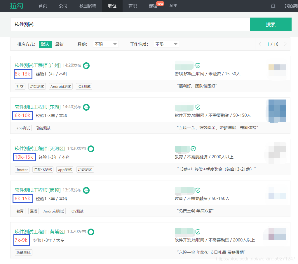 1-3年工作经验软测工程师招聘薪资