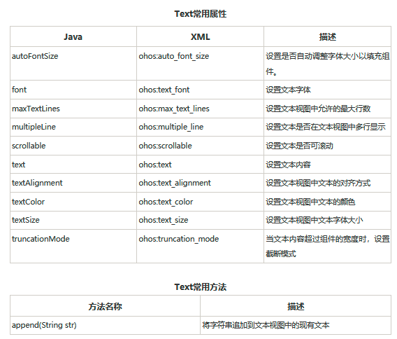 到这里我们已经对Text有了大致的了解,对两种编写布局的方式也有了大致的了解。Text有很多属性和方法,我们在这里给大家列出常用的几个属性和方法。