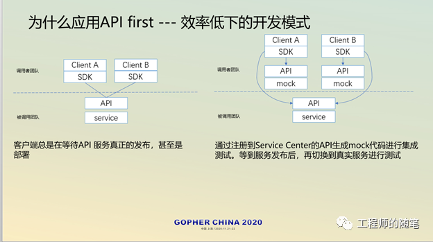 错误的方式:客户端开发团队等待后端的服务编写完成后,才能开始进行集成开发。