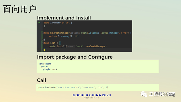 可插拔:也就是按需在编译期引入(受限于 go 语言能力),例如配额系统的具体实现在社区是不需要的