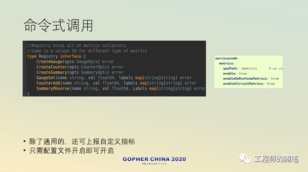 框架内部提供了命令式调用能力,比如指标收集就是这样的典型能力也提供了声明式使用方式,比如流量管理,基于流量特征的限流能力声明式使用也支持金丝雀发布