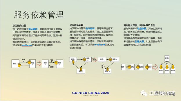 此外简单的依赖有助于系统测试和分析。这给架构师一个很好的审视方式,可以及时看到微服务间的依赖关系,对架构进行调整。