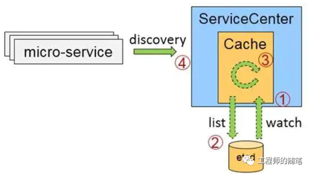 我们就要用软手段来规避,获取一定的可靠性。所以Service Center 引入了异步缓存机制,在启动之初Service Center 会与 etcd 建立一个长连接,也就是 watch。每次 watch 的时候为了防止建立 watch 时间窗发生变化,做了一层保护,在 watch 之前做了全量的查询。在运行过程中查询所得到的资源变化会缓存到 Service Center 本地,然后进行异步的循环,这样不仅低成本的提升了可用性,也提升了性能。