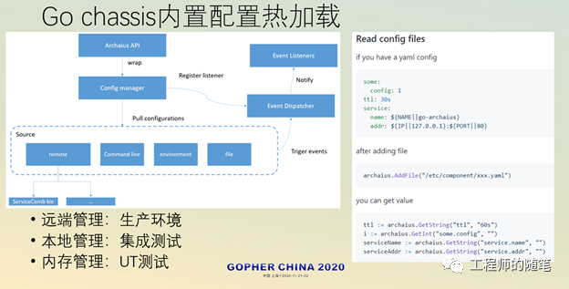 可直接参考https://github.com/go-chassis/go-archaius,后面我会专门出文章来讲这块,Shopee在这里已经实践的非常好了。