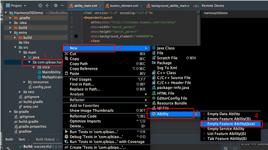 到这里,我们的第二个页面算是简单的创建完毕了,下一步,我们需要在主页面下添加交互逻辑,让它可以跳转到这个新的slice页面中来,在主页面(MainAbilitySlice)中去添加按钮点击的事件逻辑: