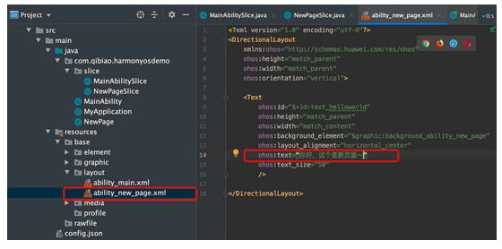 我们打开ability_new_page.xml,简单修改下输出文本: